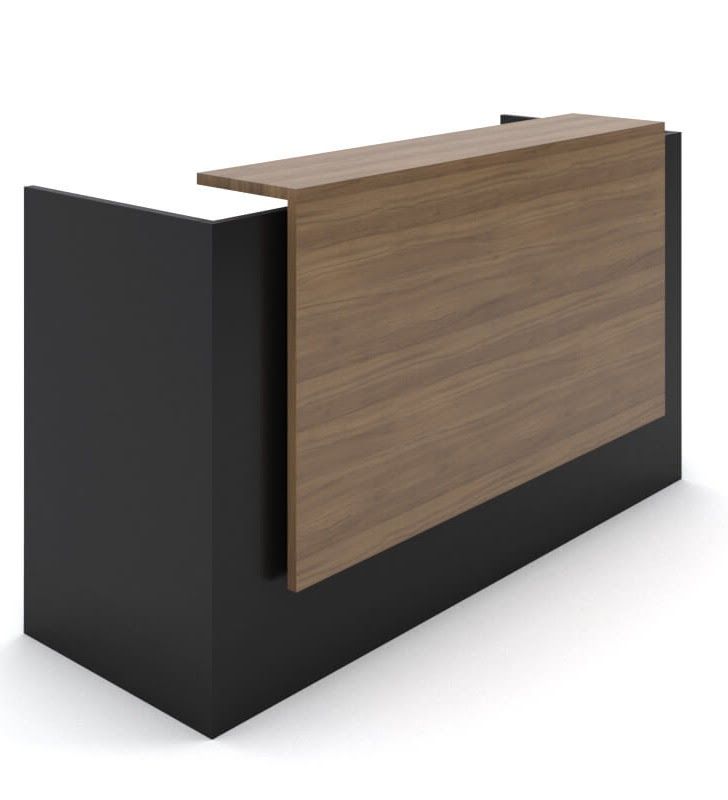 - דלפקי קבלה מעוצבים – עם לוגו חרוט, תאורה מובנית ועץ יוקרתי.